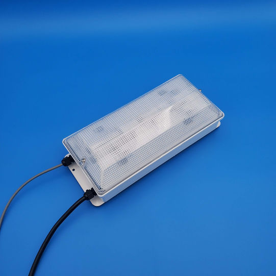 Polycarbonate housing and gasketed lens for durability and long life, easy mounting to overhead or bulkhead.